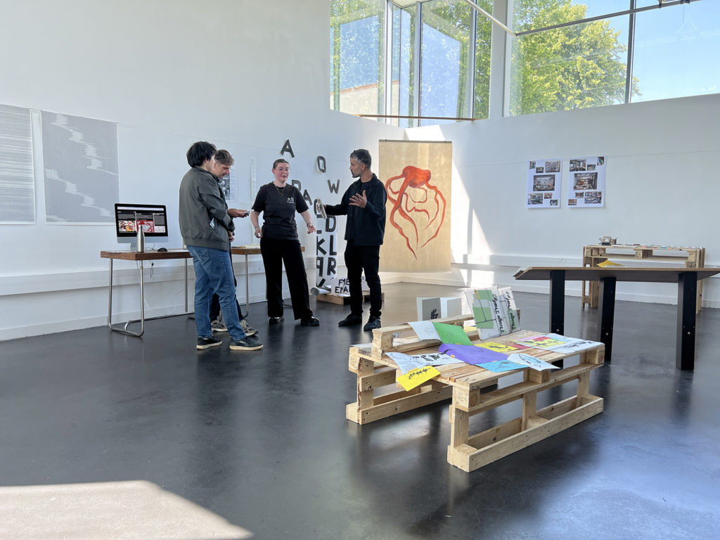 Lieu des expositions temporaires. Cet espace nous permet d’accueillir des œuvres d’artistes ou d’y exposer le travail des étudiant·es.